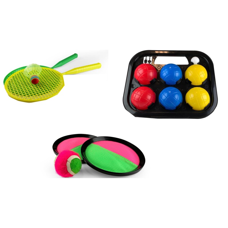 Acest rucsac te va ține ocupat o zi întreagă fără să obosești. Conține tot ce ai nevoie pentru a juca 5 jocuri diferite: Badminton, Catch Ball, Boccia, Frisbee și Speedball.