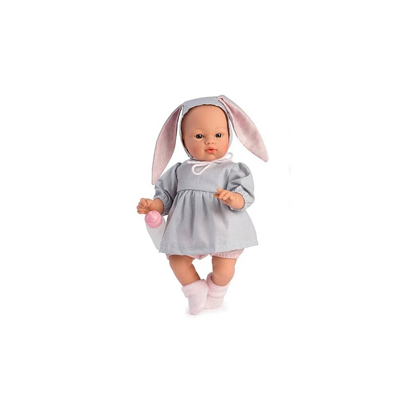 Asi Koke Doll In Gray Dress With A Hood With Rabbit Ears