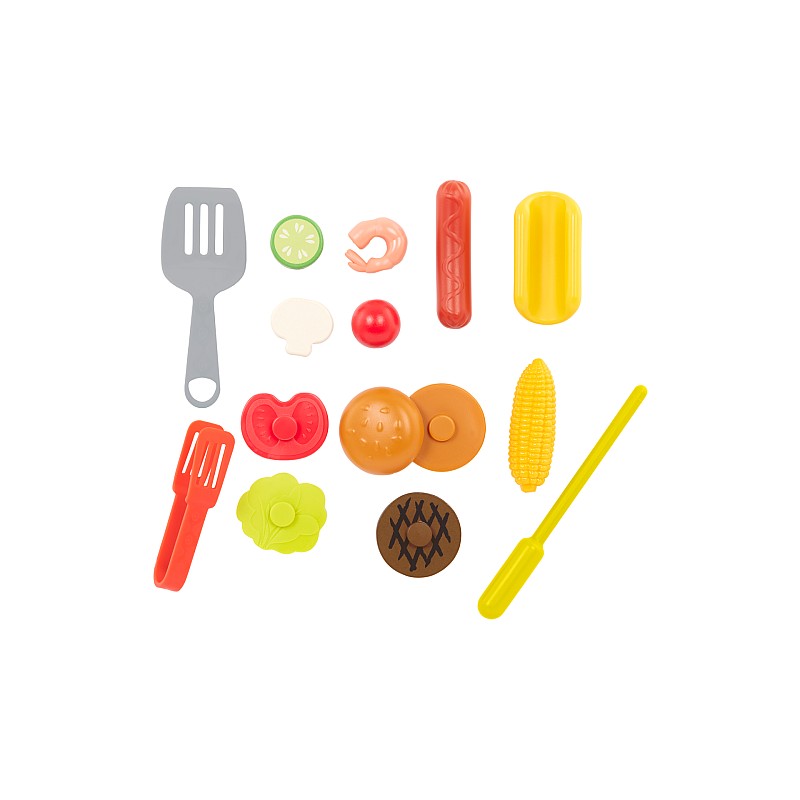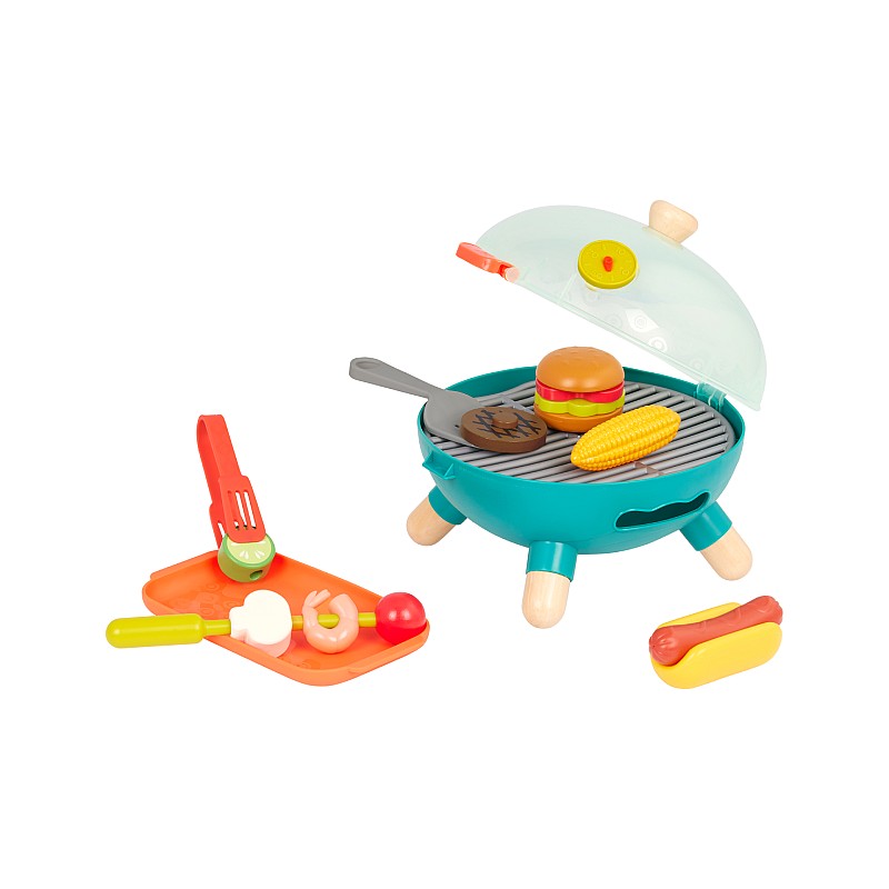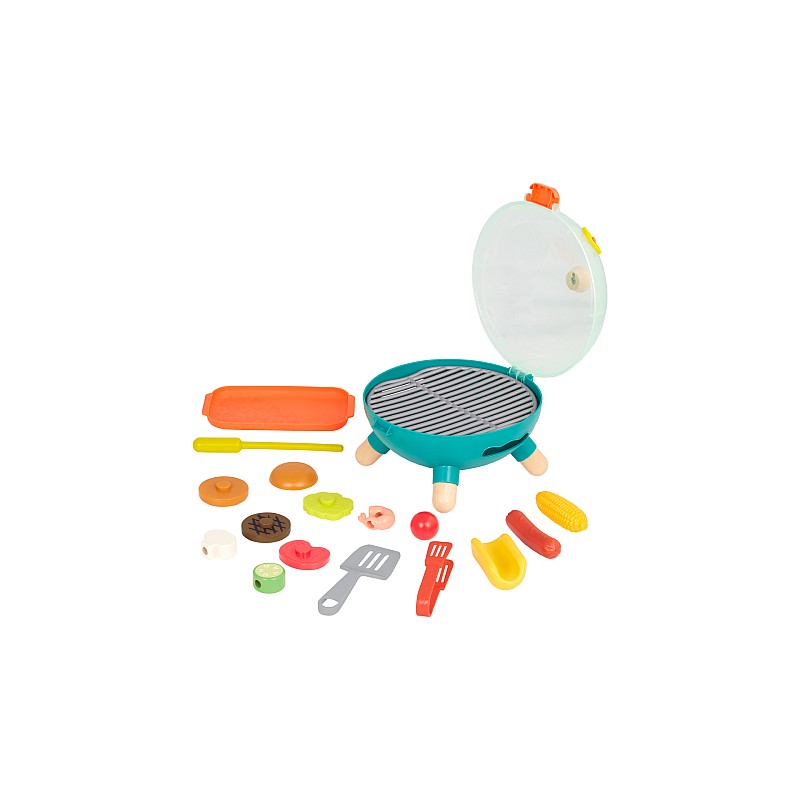 Burger? Hot dog? Legume? Gătiți totul la grătar cu setul de joacă Mini Chef - Grill BBQ de la B. toys! Acest set de 18 piese are tot ce au nevoie mini-masterii grătarelor pentru un grătar imaginar.