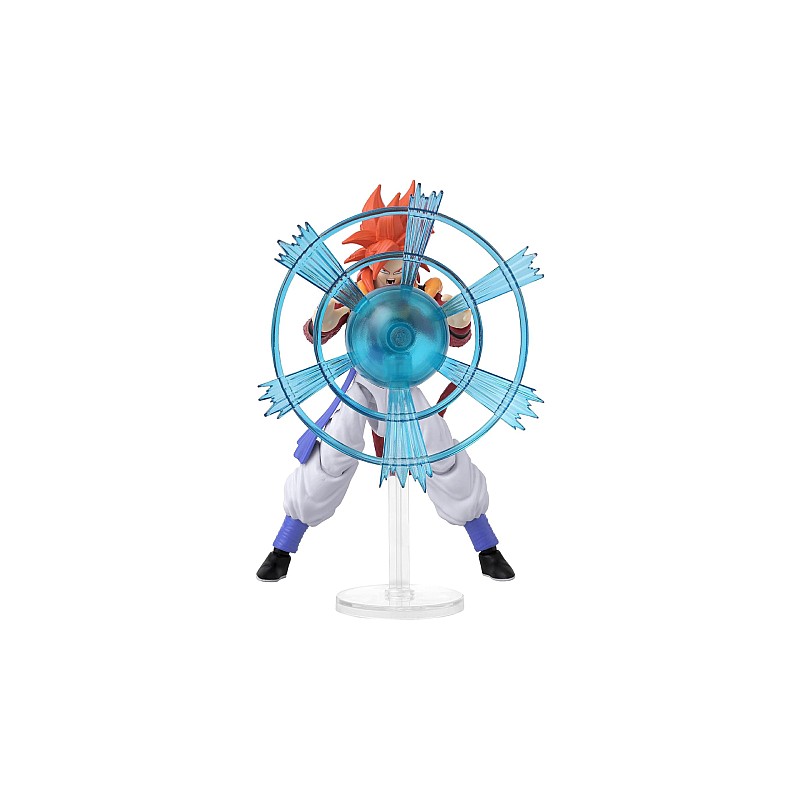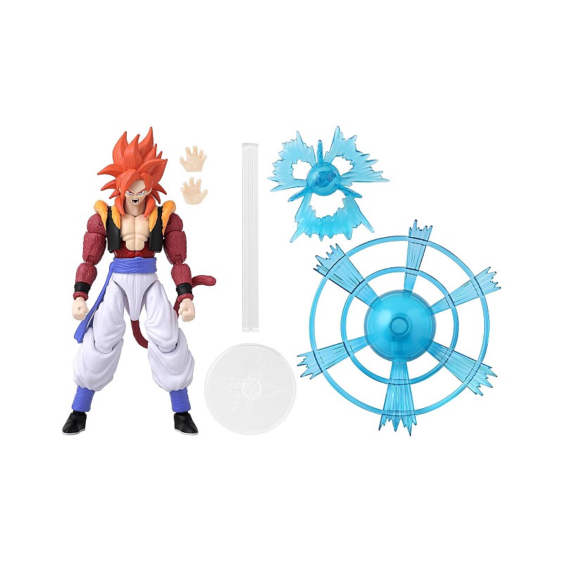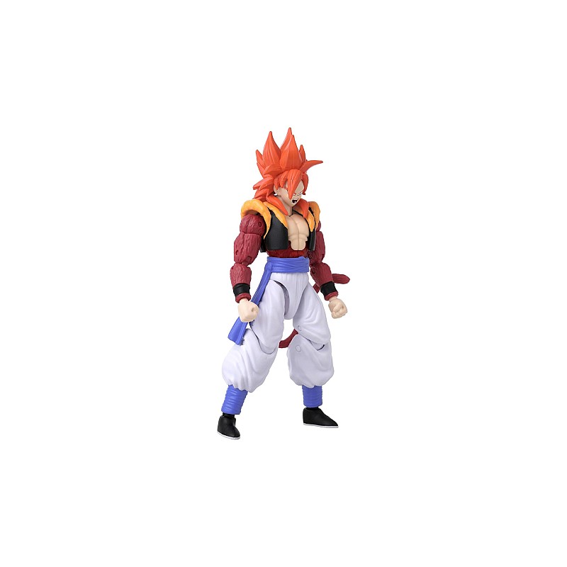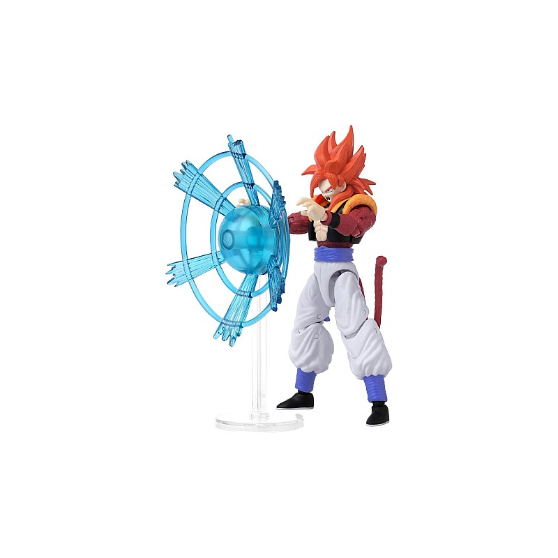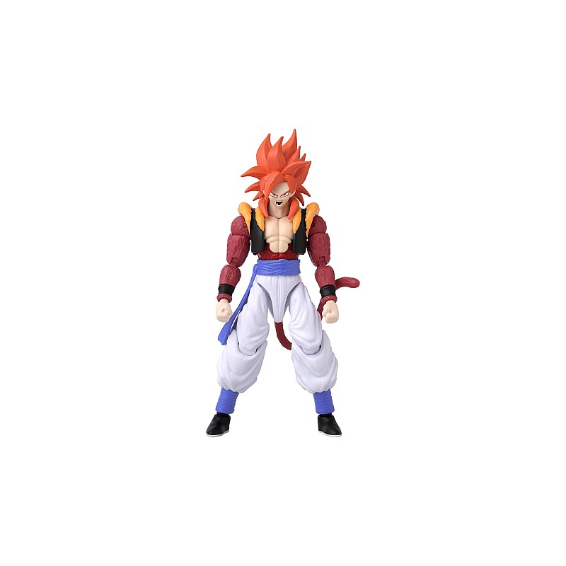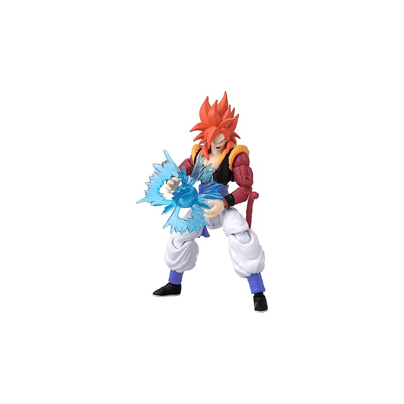 Figurina decorată în mod uimitor vă permite să recreați momentele epice ale lui Super Saiyan 4 Gogeta cu ajutorul funcției sale activate cu degetul mare.