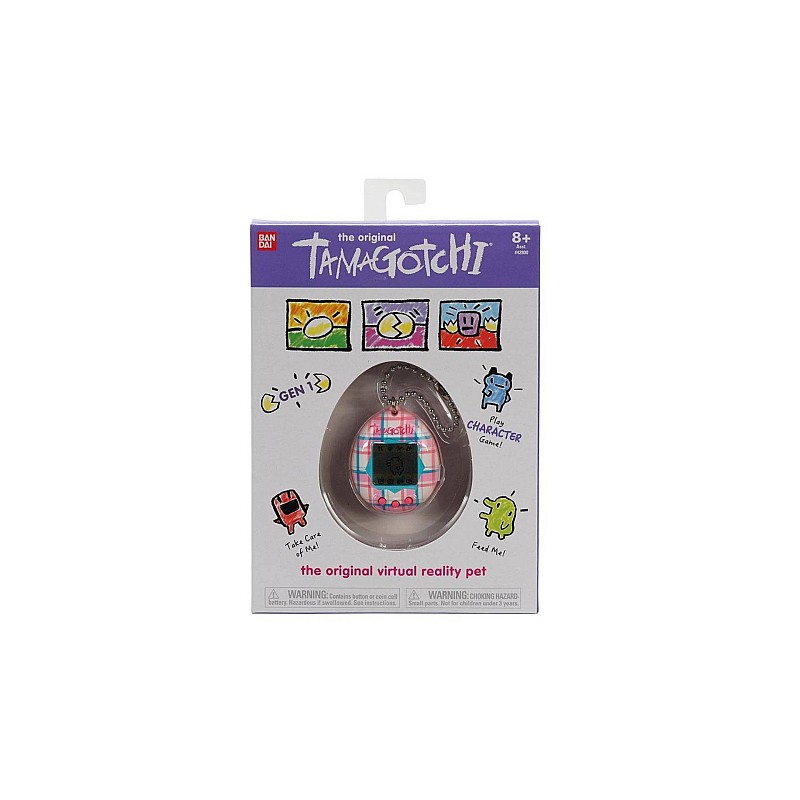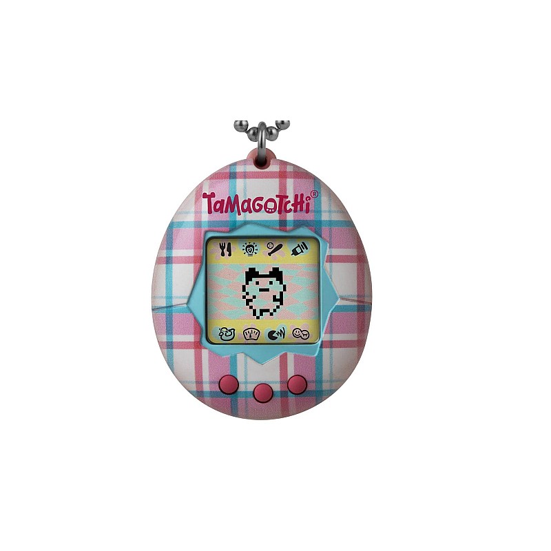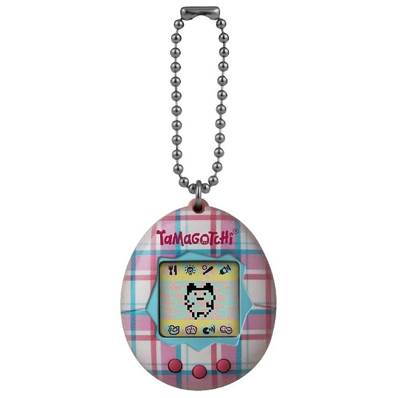 Acest gadget are un inveliș în carouri roz și vișiniu cu "Tamagotchi" și butoane roz și ramă vișinie cu programare și personaje originale și logo actualizat.