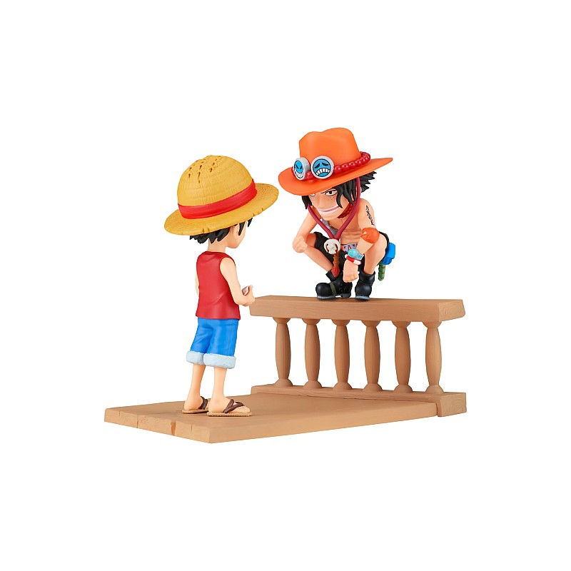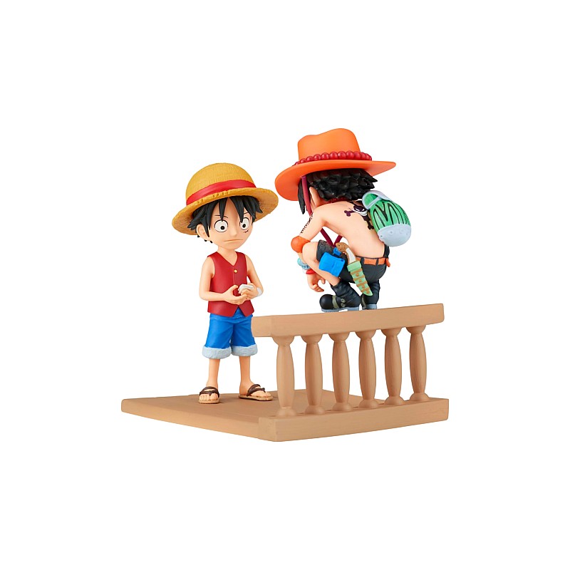 Figurina prezintă Monkey D. Luffy și Portgas D. Ace, două personaje emblematice din seria One Piece. Luffy este protagonistul principal, iar Ace este fratele său și un personaj iubit în serie.
