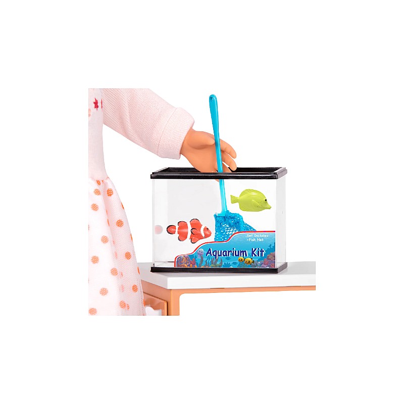 Pachetul include: tejghea, suport pentru animale de companie, pat pentru animale de companie, casă de marcat, 2 coșuri de răchită, acvariu, 2 boluri de mâncare pentru animale de companie, plasă pentru acvariu, pește clovn, pește de acvariu galben, pungă de cumpărături, cușcă pentru hamsteri, roată pentru hamsteri, 2 jucării, 2 mingi și os.