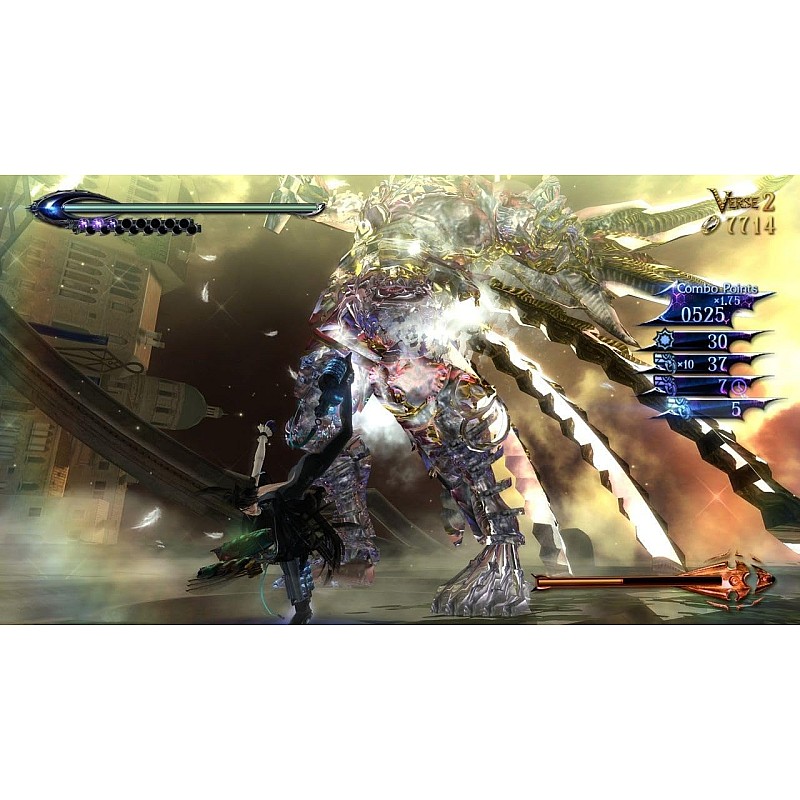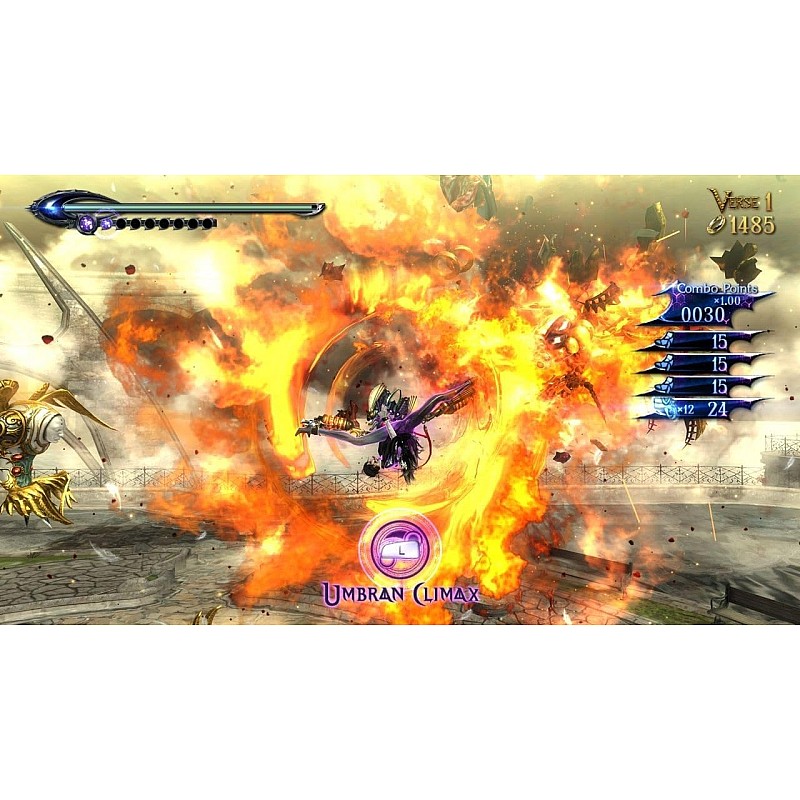 - Inițiază noua tehnică Umbran Climax pentru a invoca temporar demoni și pentru a crește puterea de atac și raza de acțiune a lui Bayonetta ori de câte ori îi umpli indicatorul magic.