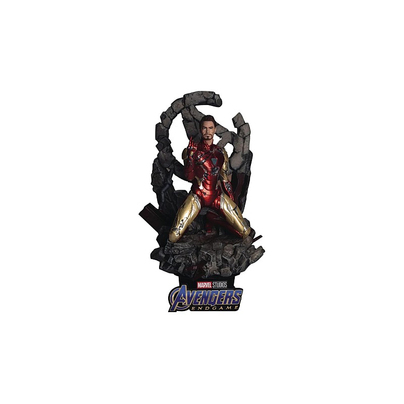 Recreând cu acuratețe această scenă faimoasă, D-Stage-081 îl potrivește cu Tony Stark cu un fundal 3D detaliat, care include o siglă Avengers căzută.