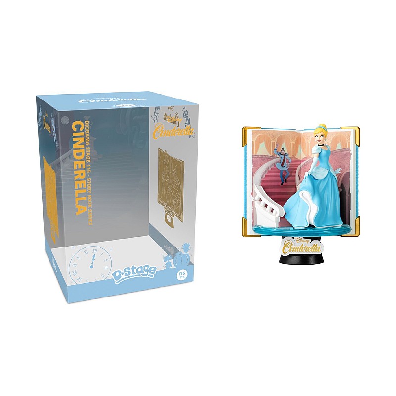 În dioramă, eleganta Cenușăreasă coboară scările, cu Marele Duce care o urmărește în fundal.