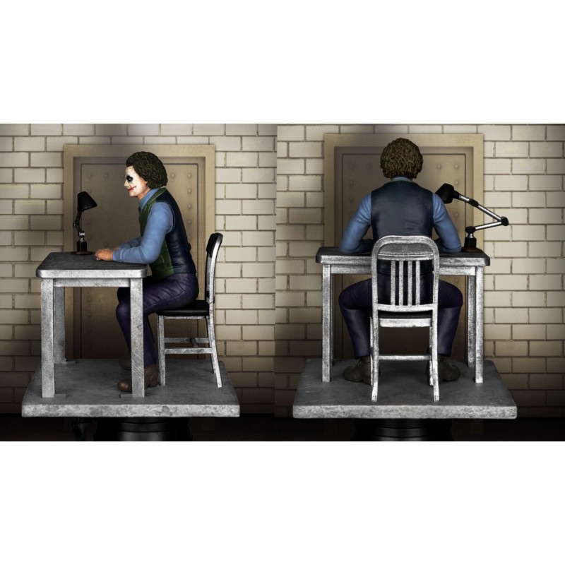The Joker poate fi văzut aici stând în fața unei mese de interogatoriu fiind arestat de noul comisar Gordon. Colectioneaza-l pentru a-ti completa colectia de diorame si figurine din universul Marvel.