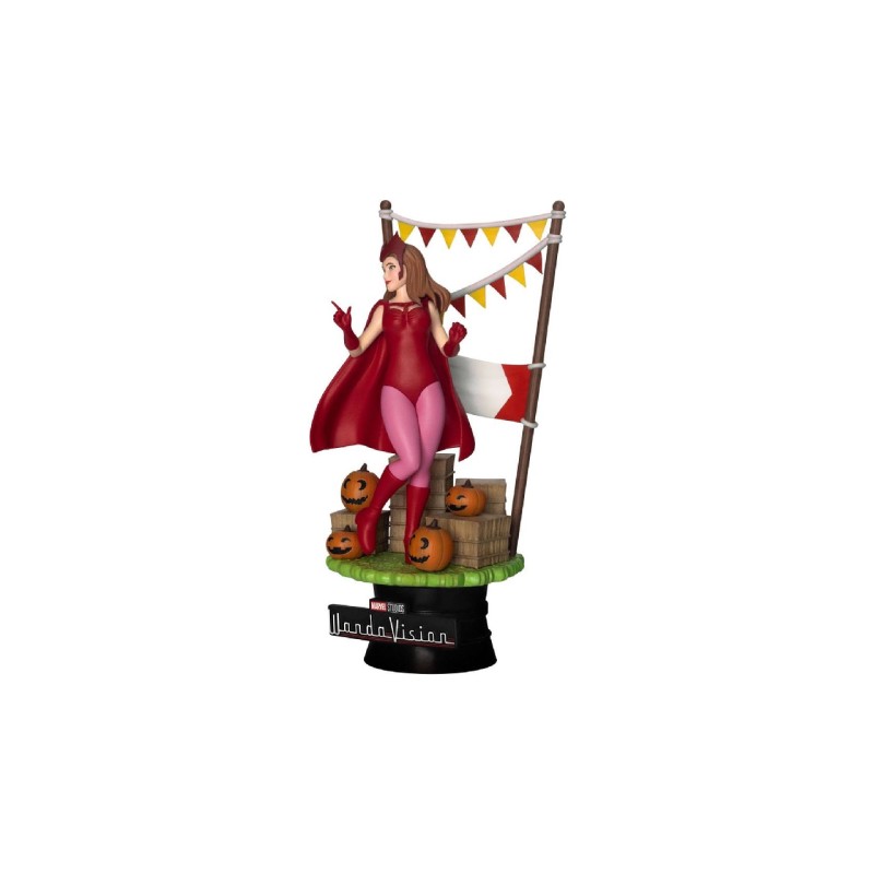 Bazată pe episodul "All-New Halloween Spooktacular!", această statuie WandaVision Wanda DS-083 D-Stage o prezintă pe Wanda îmbrăcată în ținuta clasică a Vrăjitoarei Scarlate.