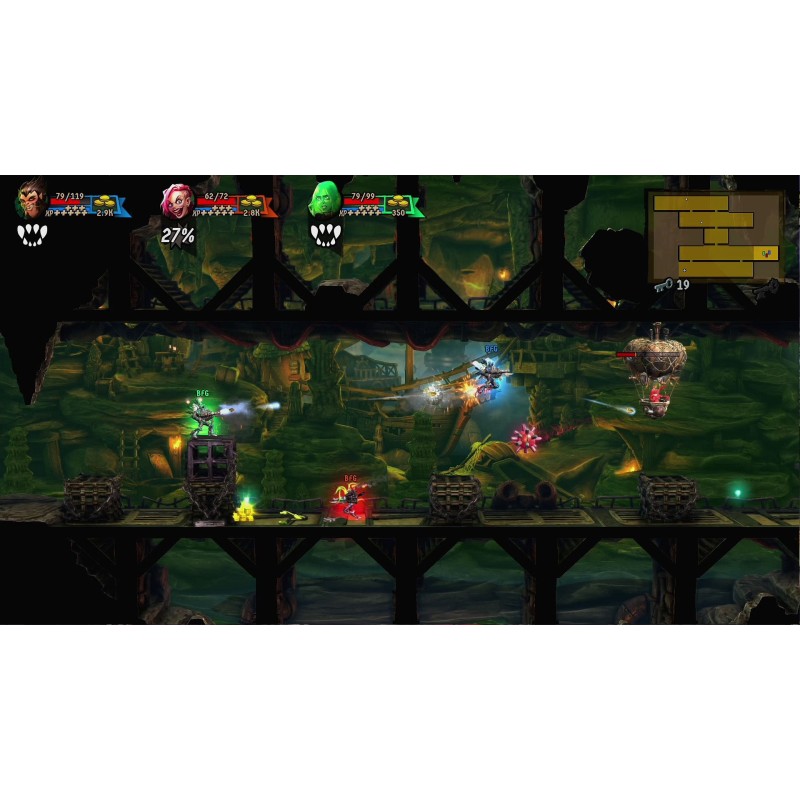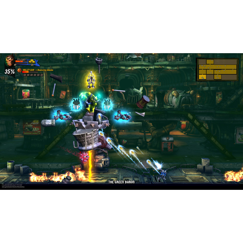 - Comenzi clasice cu două stick-uri pentru un gameplay de tip "run 'n' gun" de școală veche.
