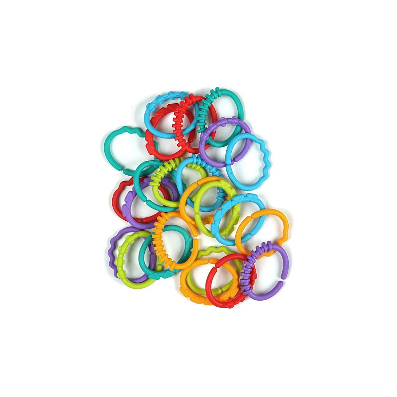Aceasta este jucăria pentru dentiție Bright Starts Lots of Links cu design amuzant, ușor de ținut în mânuțele celor mici.