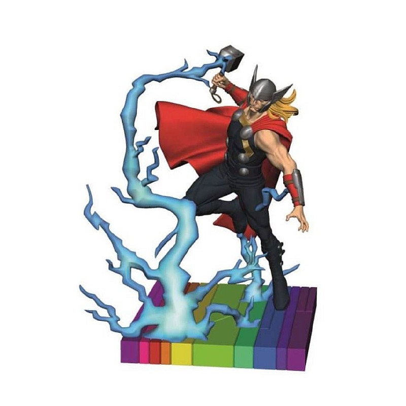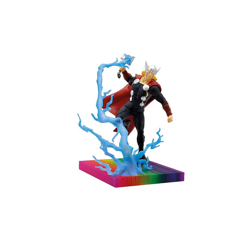 Figura Thor îl înfățișează pe zeul tunetului în armura sa iconică, ținând în mână Mjölnir, puternicul său ciocan.