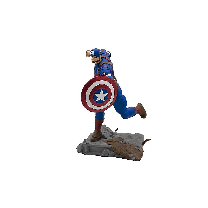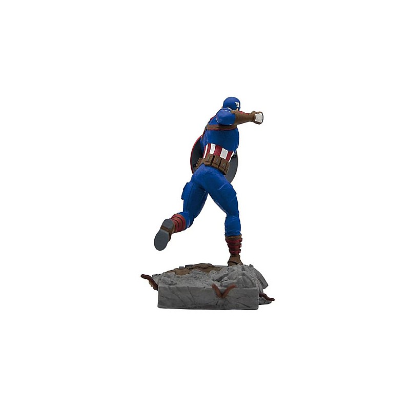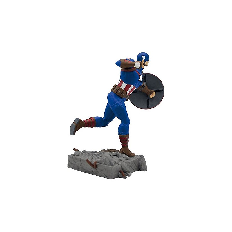 Figura Căpitanului America îl înfățișează pe erou în armura sa iconică în stele și dungi, gata să își mânuiască scutul împotriva răului.