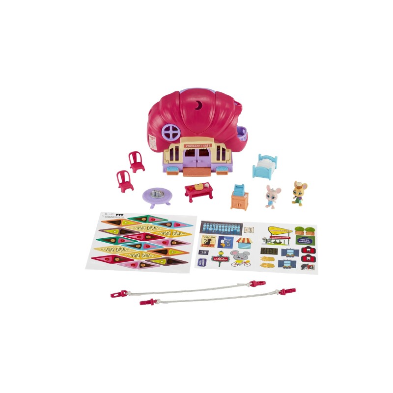 Există, de asemenea, o masă și 2 scaune, o casă de marcat și un cărucior de brânză, 2 șoareci exclusiviști, banderolă și autocolante!