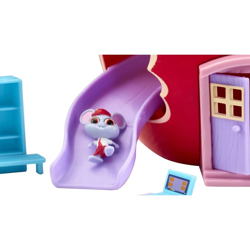 Deschideți trapa în formă de buton și șoriceii se pot plimba pe toboganul distractiv. Există, de asemenea, 2 figurine exclusive; Miss Books și Scratch.