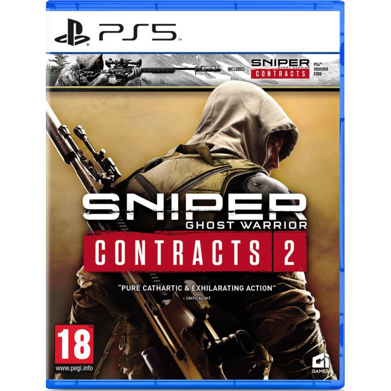 Pachetul dublu Sniper Ghost Warrior Contracts conține discul Sniper Ghost Warrior Contracts 2 cu Sniper Ghost Warrior Contracts 1 și un cod de voucher pentru descărcare.