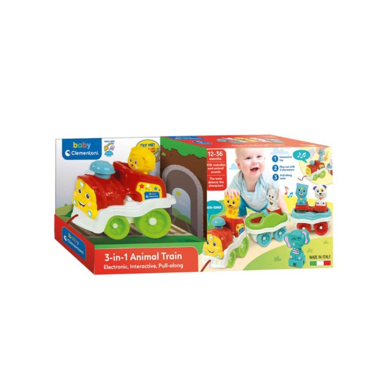Plasând cele cinci animale pe locomotivă și apăsând pe coșul de fum, copilul poate asculta sunetele și melodiile animalelor.