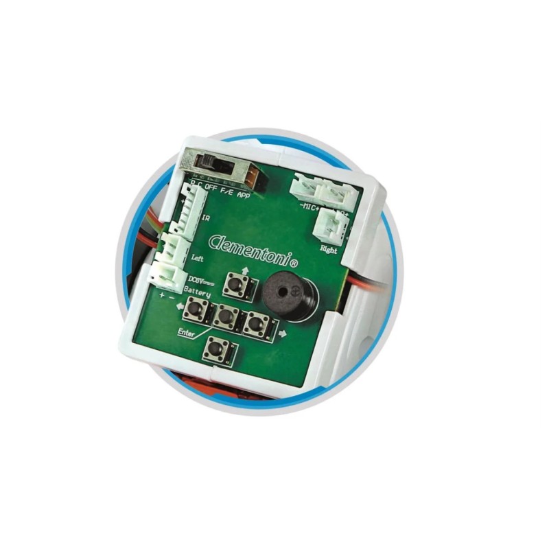 Puteți folosi microfonul pentru a-i da comenzi prin simple bătăi din palme, în timp ce panoul cu butoane de pe spatele robotului poate fi folosit pentru a-i programa traseul.