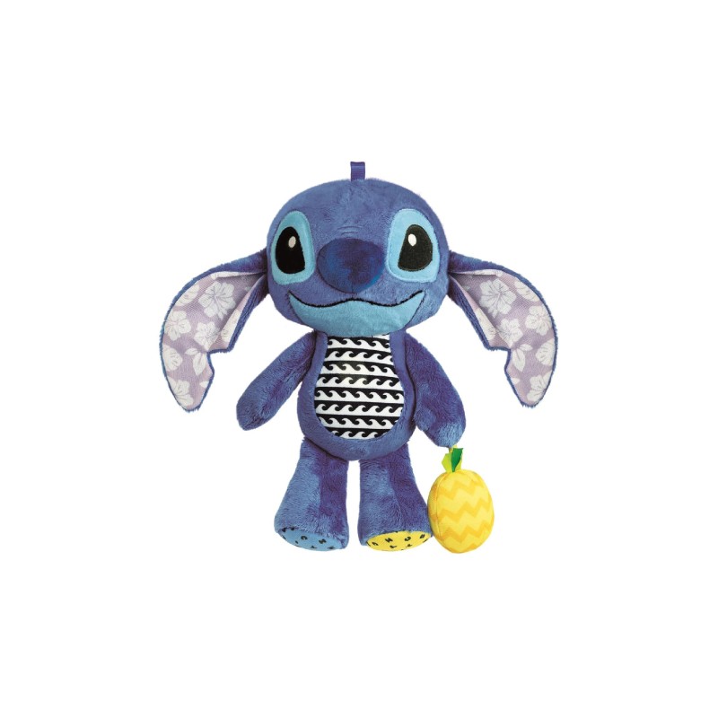 O jucărie de pluș dulce Stitch, cu activități concepute special pentru cei mici și culori și imprimeuri strălucitoare pentru a le stimula interesul și vederea.