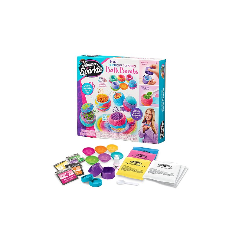 Pregătiți-vă pentru o distracție explozivă și efervescentă cu bombele de baie Shimmer n' Sparkle Rainbow Popping.