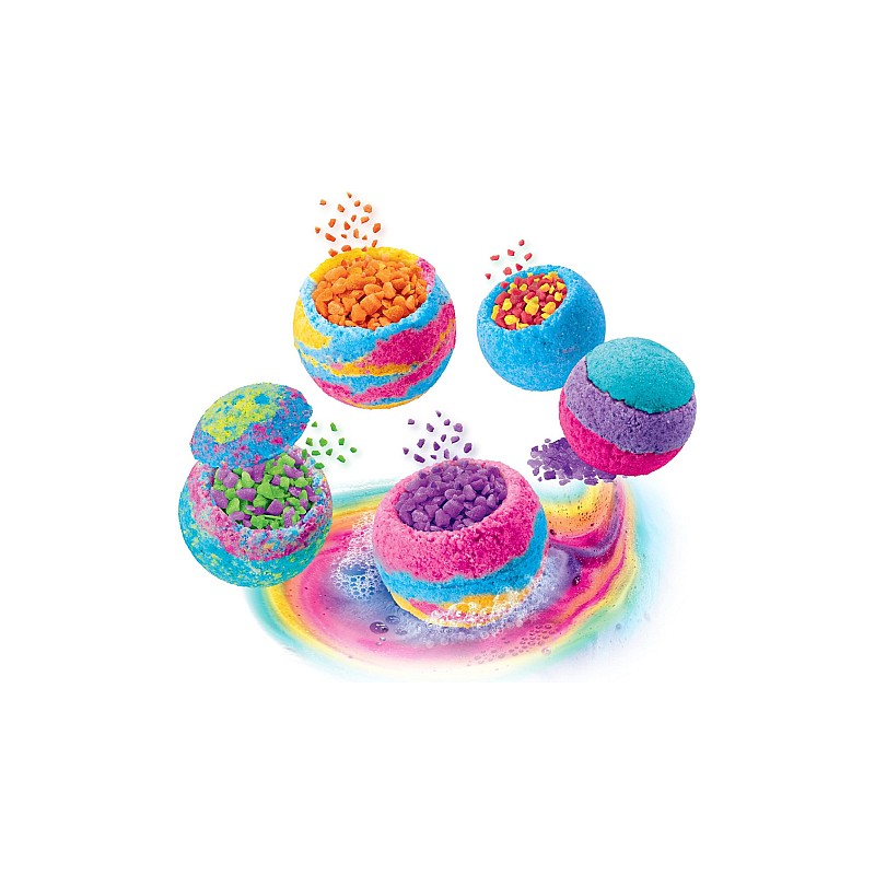 Fă bombe de baie vibrante cu aromă de curcubeu, apoi ascultă-le cum pocnesc și zvâcnesc.
