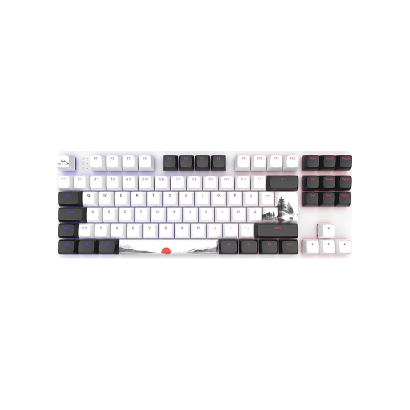 Această tastatură TKL ergonomică se mândrește cu o schemă de culori alb/negru.
