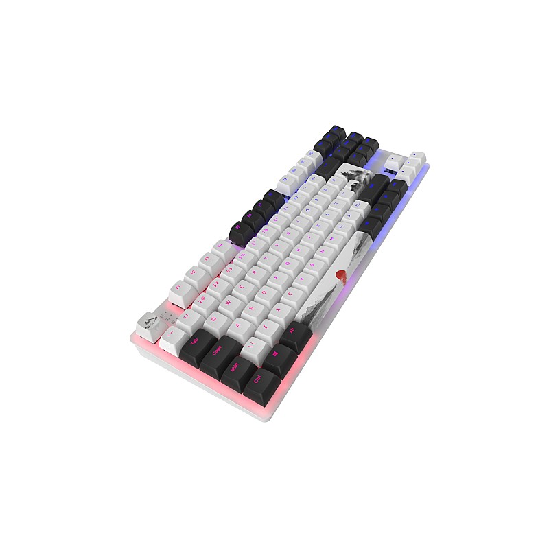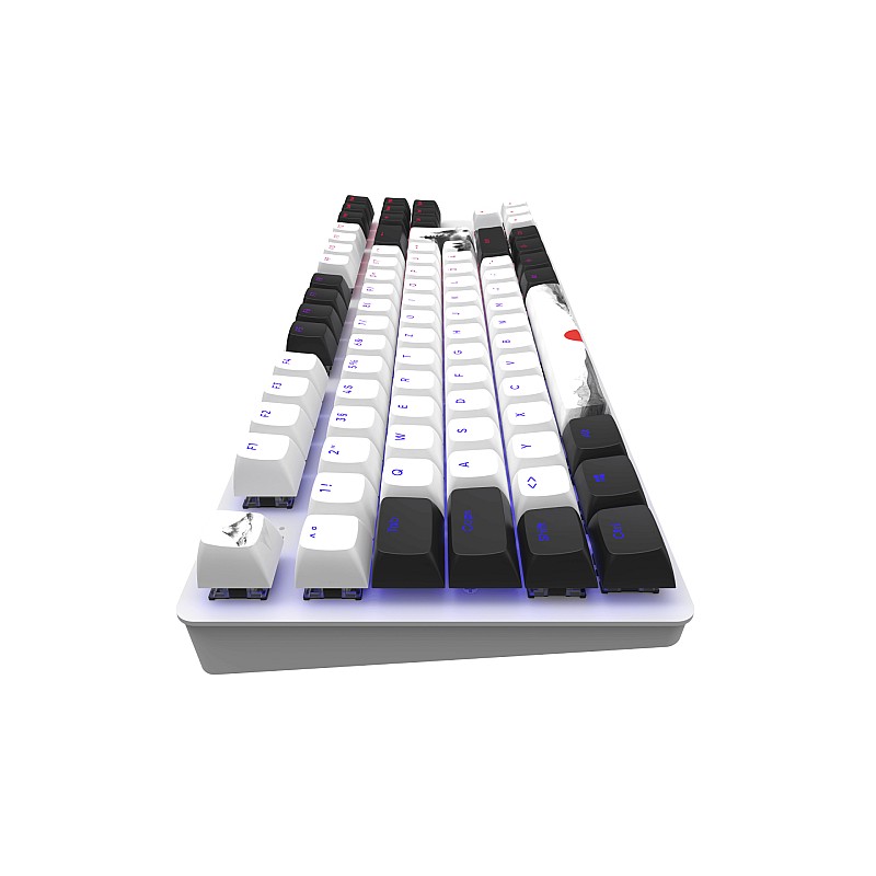 - Această tastatură compactă de gaming este echipată cu 87 de taste în alb-negru