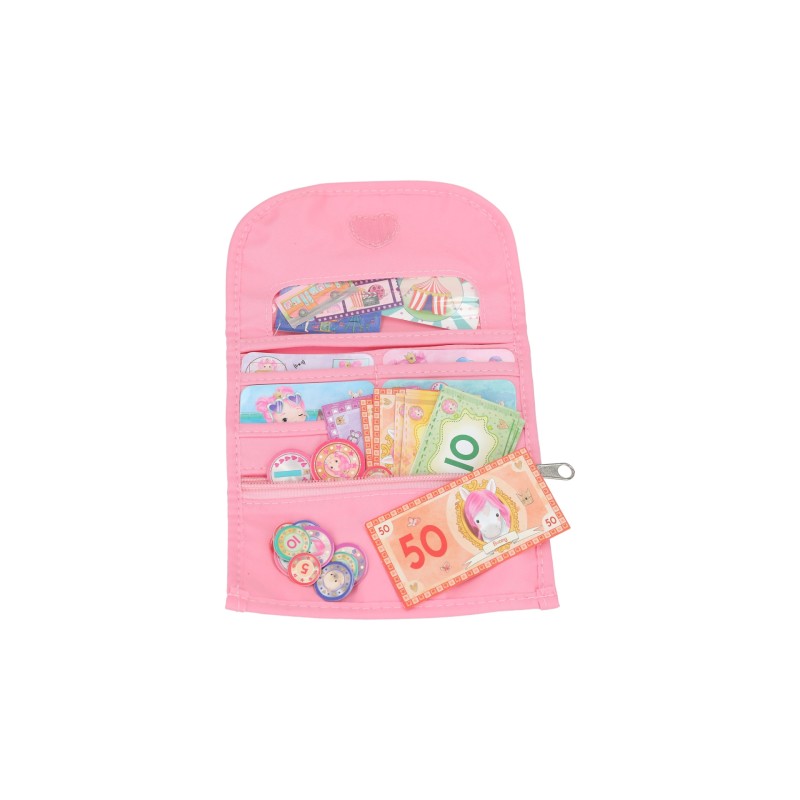 Setul Prințesa Mimi include un portofel, bani de joacă și mai multe carduri, toate super drăguțe și ilustrate cu dragoste.