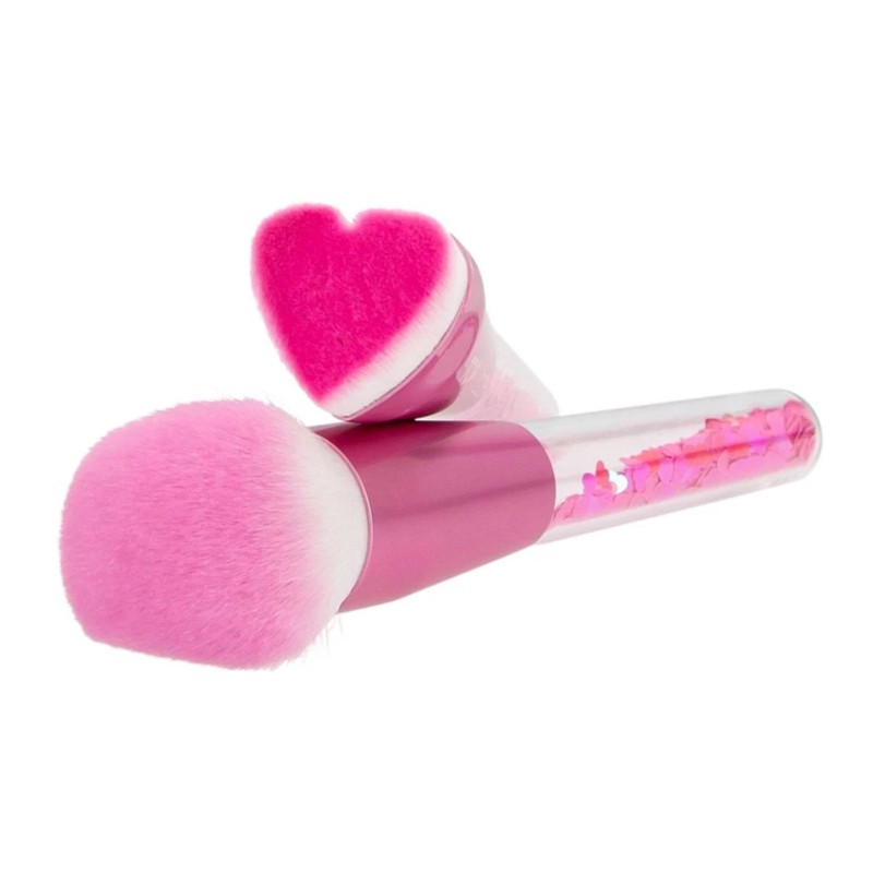 Firele moi de păr alb și roz ale pensulei pentru fond de ten formează o inimă drăguță.