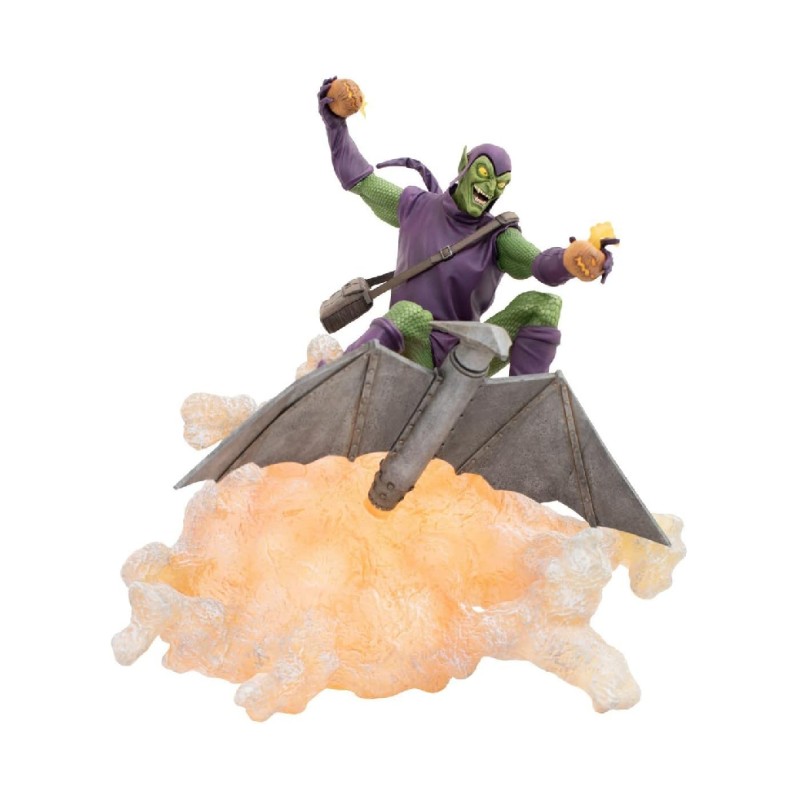 O lansare Diamond Select Toys! Eliberați Goblin-ul! Spiridușul Verde este un super-răufăcător cu tematică de Halloween ale cărui arme seamănă cu lilieci, fantome și lanterne de Halloween.