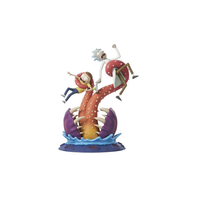 Ai grijă, Morty! În această primă piesă de colecție Rick & Morty de la Diamond Select Toys, Rick și nepotul său Morty sunt prinși în limba cu țepi a unei creaturi misterioase!