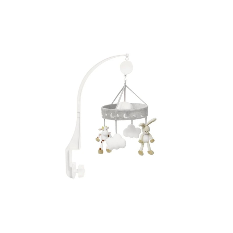 Acest mobil drăguț este ușor de atașat la pătuț.