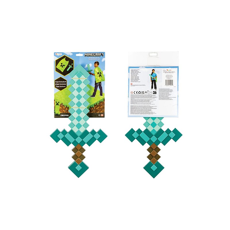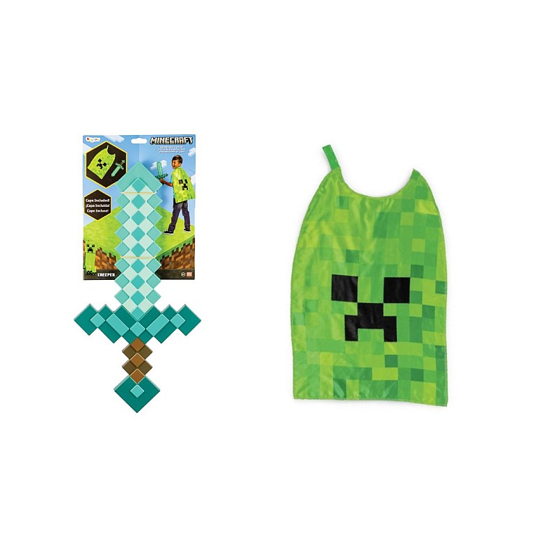 Costumul este format din sabie de diamant 51 cm lungime si o pelerina înfățișând unul dintre monștrii din joc Creeper.