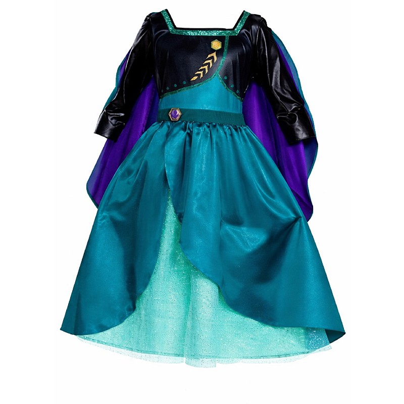 Acest costum are o pelerină detașabilă, o panglică strălucitoare pe decolteu, o fustă cu mai multe straturi și o cataramă mulată cu blazonul Arendellei pe talie.