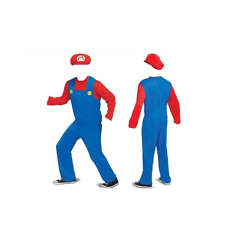 Include salopetă iconică cu bretele și pălărie roșie, perfecte pentru carnaval, petreceri costumate sau evenimente tematice.