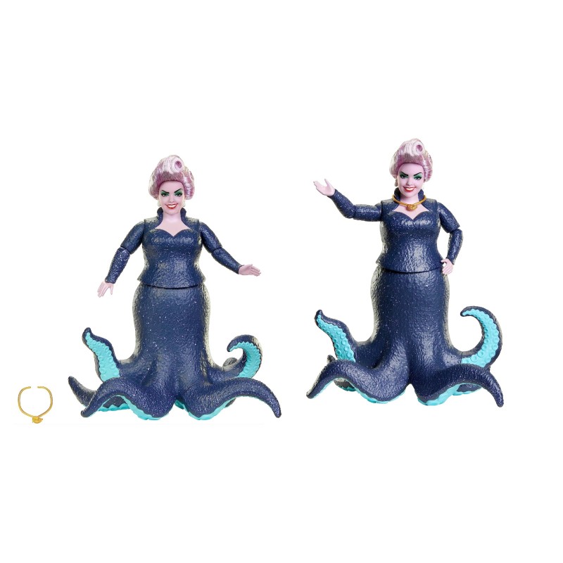 Păpușa de modă pozabilă Ursula este înfățișată cu tentaculele ei caracteristice cu detalii strălucitoare și are părul ei cu coafură lavanda pentru distracție la coafare.