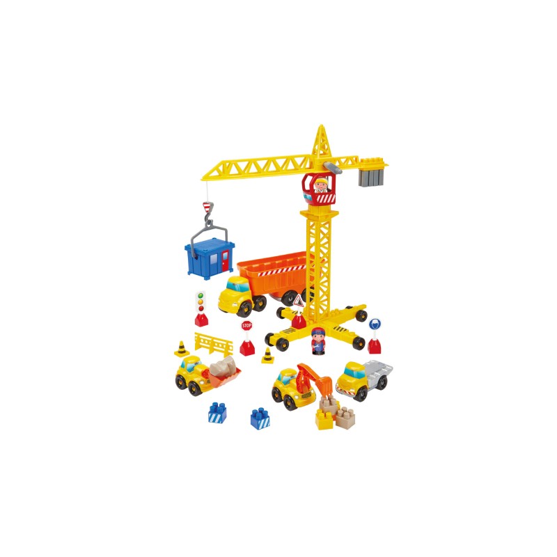 Acest set de joacă de mari dimensiuni oferă o varietate de vehicule de șantier pentru a asigura operațiuni fără probleme.
