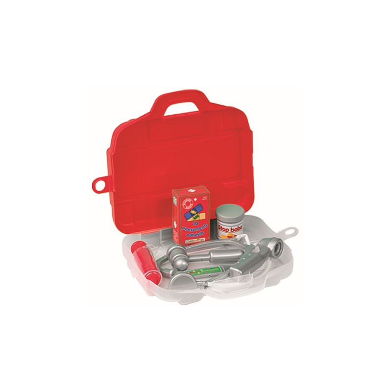 Cutia contine toate instrumentele medicale necesare vindecarii: stetoscop, termometru, ciocan reflex, otoscop, medicamente, seringa, trusa de prim ajutor.