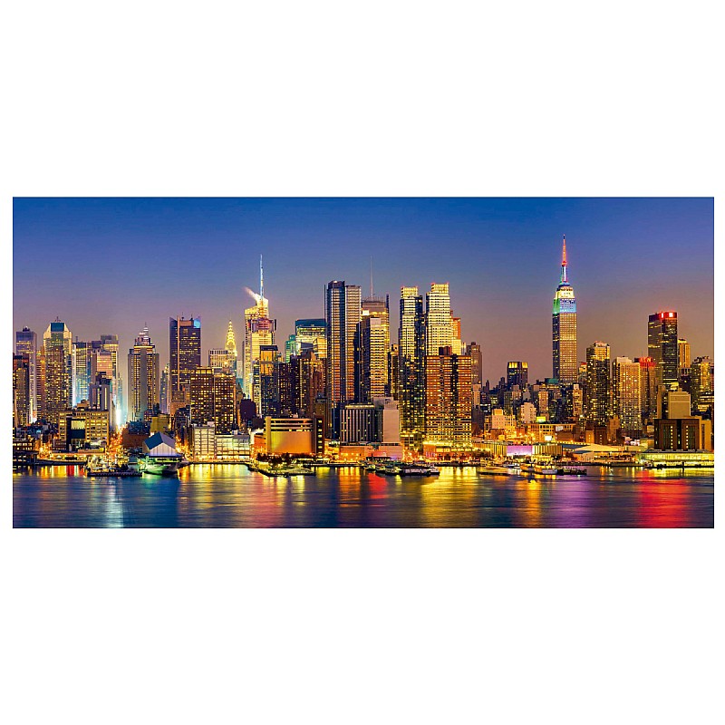 Puzzle-ul ilustrează skyline-ul New York-ului într-un mod spectaculos, capturând atât clădirile iconice, precum Empire State Building și One World Trade Center, cât și podurile și apele care înconjoară orașul.