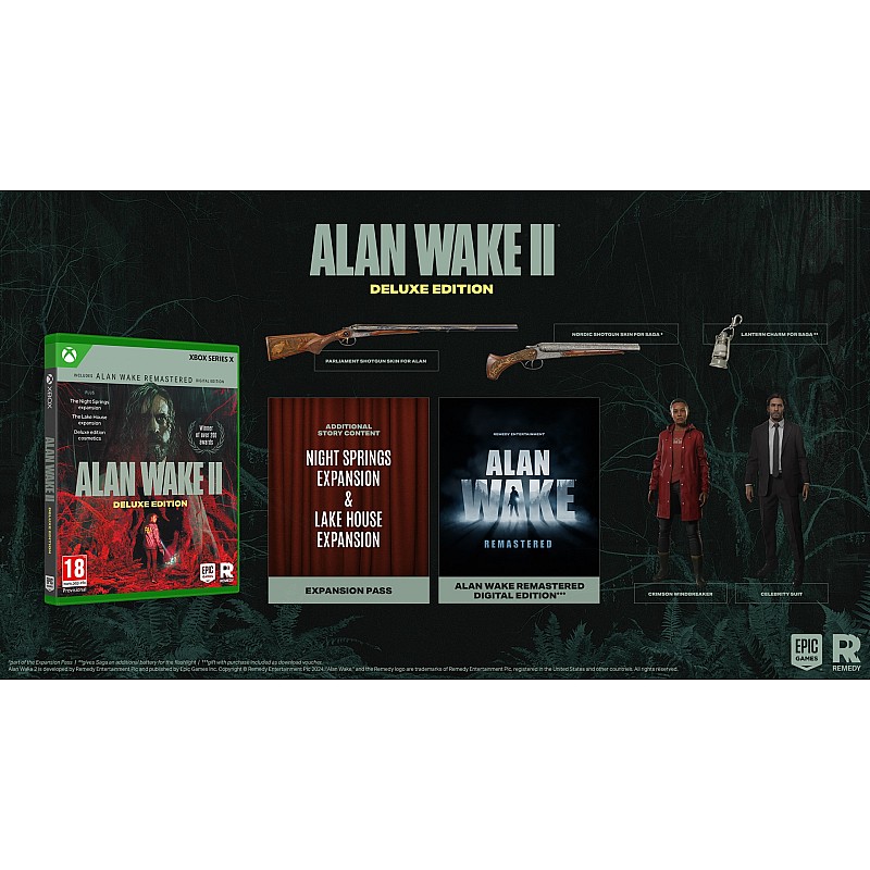 - Ediția Deluxe a Alan Wake 2 include jocul de bază, un Season Pass cu expansiunile Lake House și Night Springs, skinuri exclusive pentru arme și acces la versiunea digitală a Alan Wake Remastered.