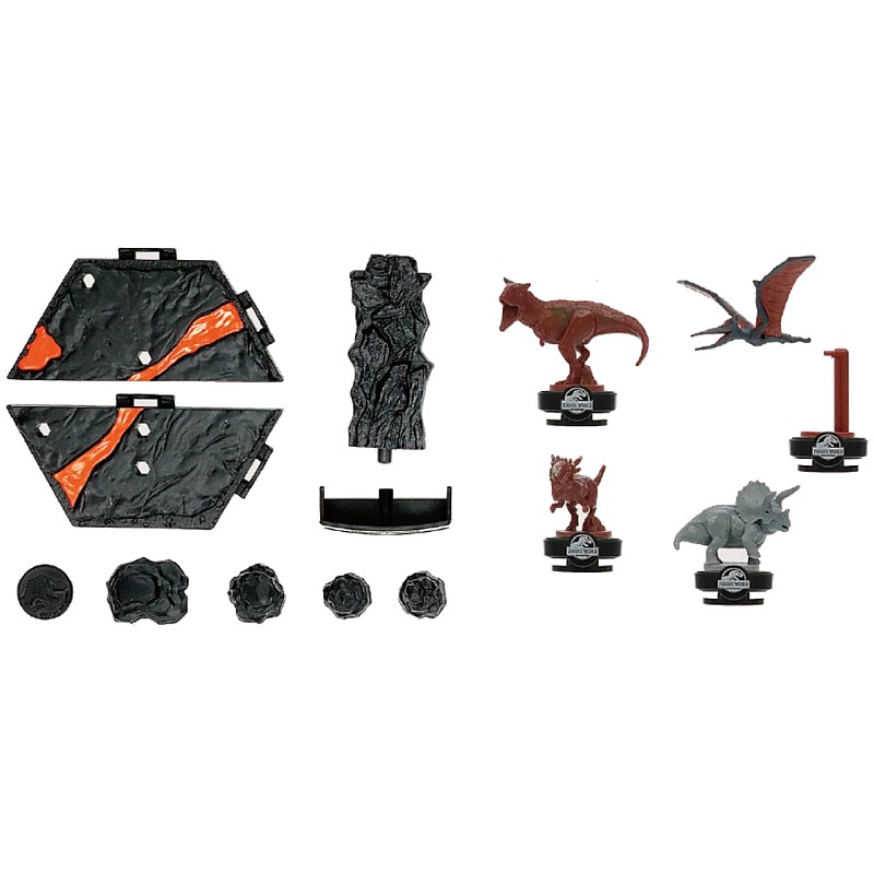Setul include o scenă insulă, patru figurine dinozaur colecționabile și patru piese pentru a oferi o provocare suplimentară