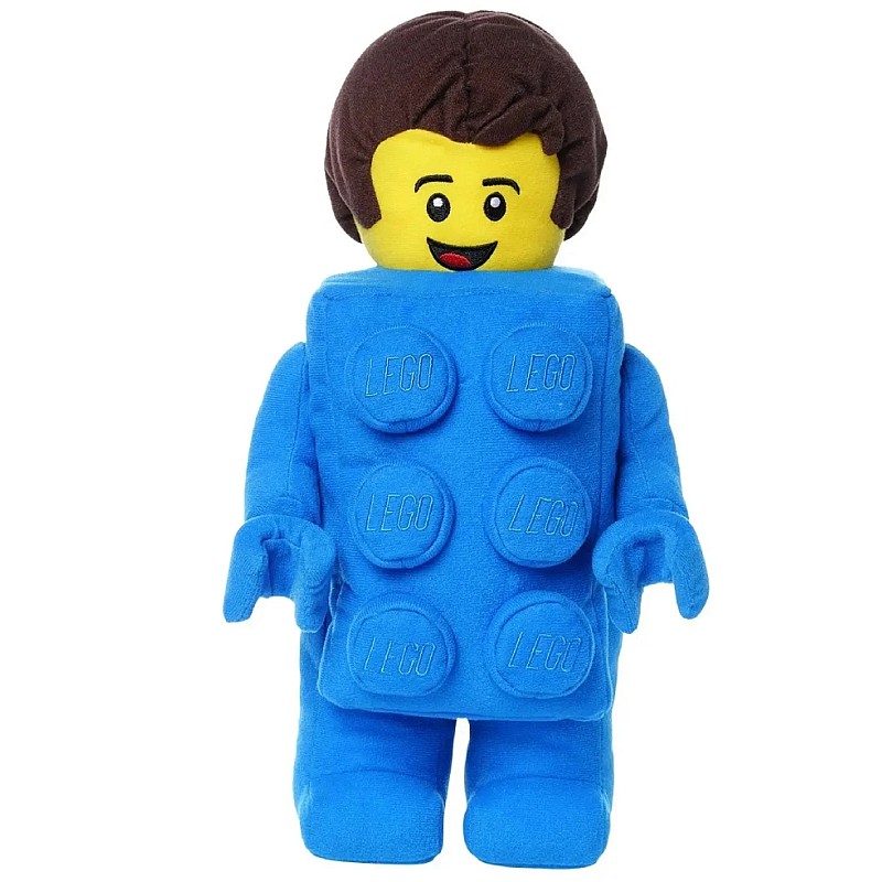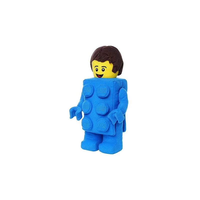 Adaugă un pic de umor la fandomul tău LEGO cu această interpretare de pluș a Băiatului cu costum de cărămidă, inspirată de seria 18 din colecția de minifigurine LEGO.
