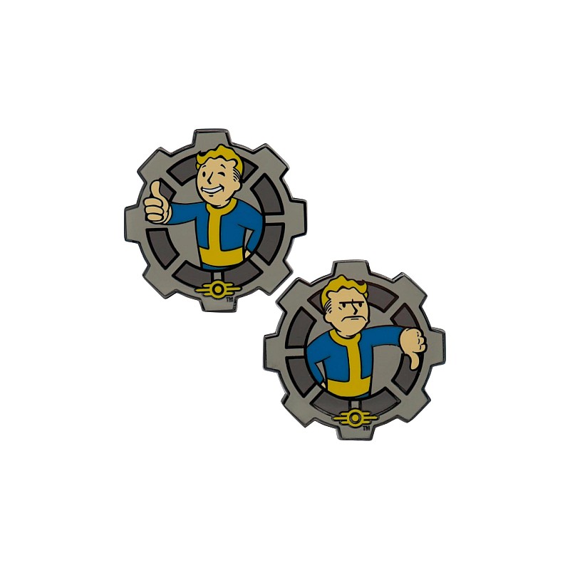 Finisat cu detalii vibrante din email, fața acestei monede prezintă un deget mare în sus,iar pe verso, un deget mare în jos.