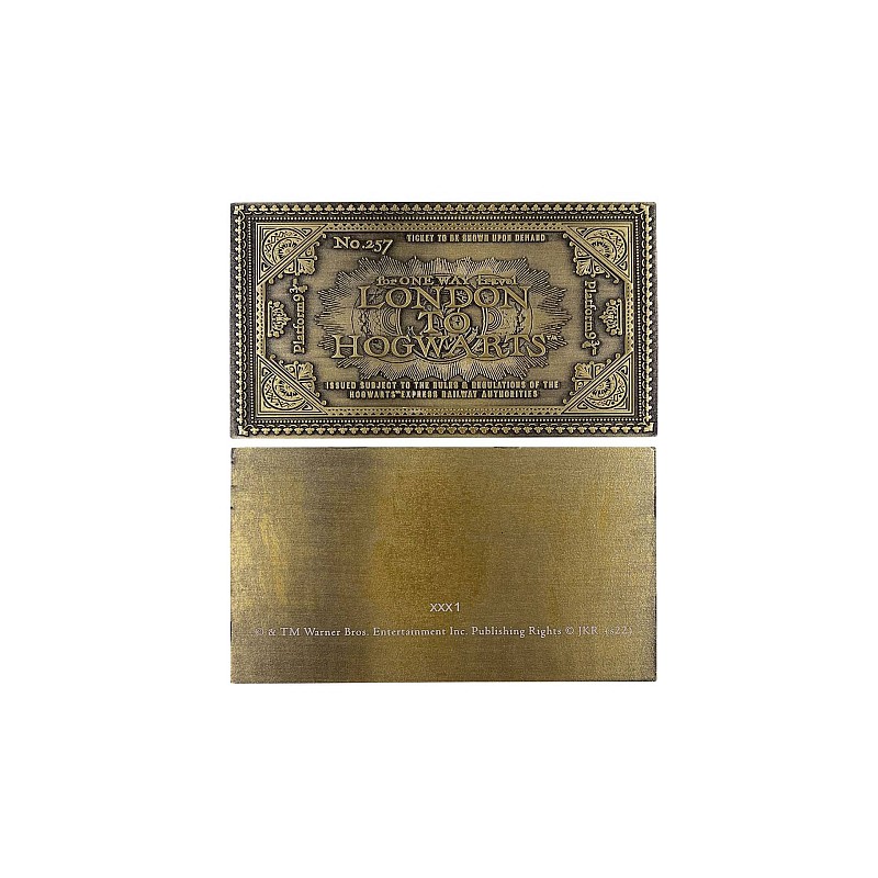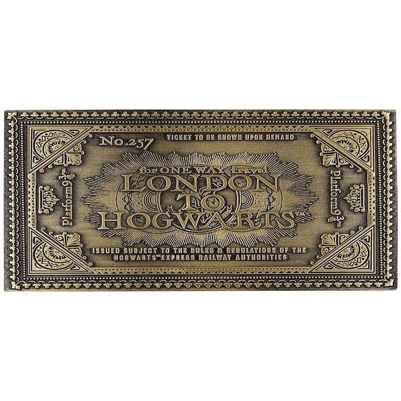 Mergeți la platforma 9 și 3/4 cu propria replică din metal cu finisaj antic a biletului de tren Hogwarts Express.