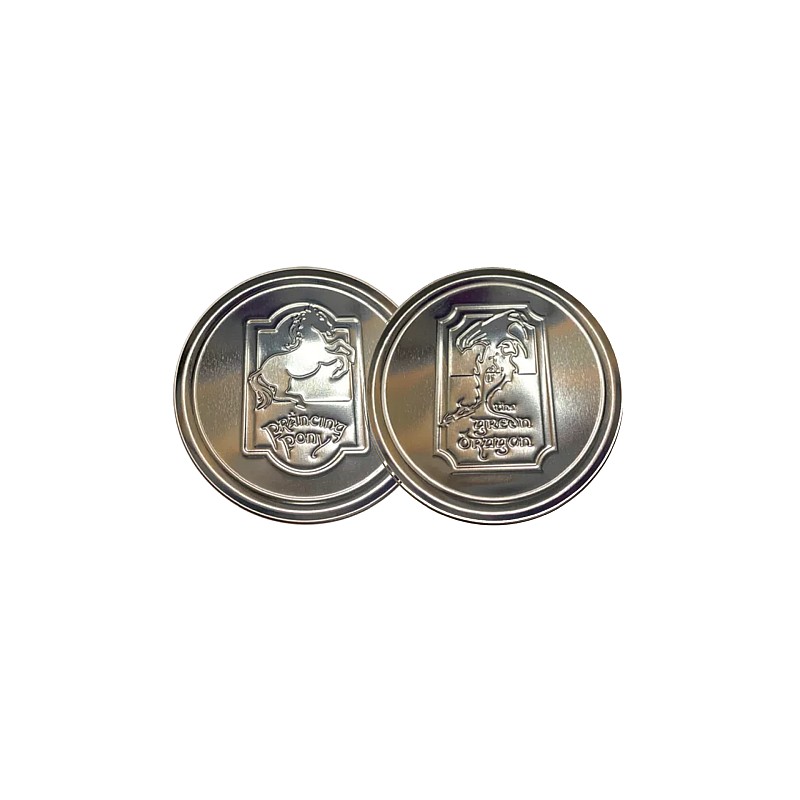 Acest set de 4 suporturi de pahare de metal Lord of the Rings are două modele în relief: The Prancing Pony și The Green Dragon.