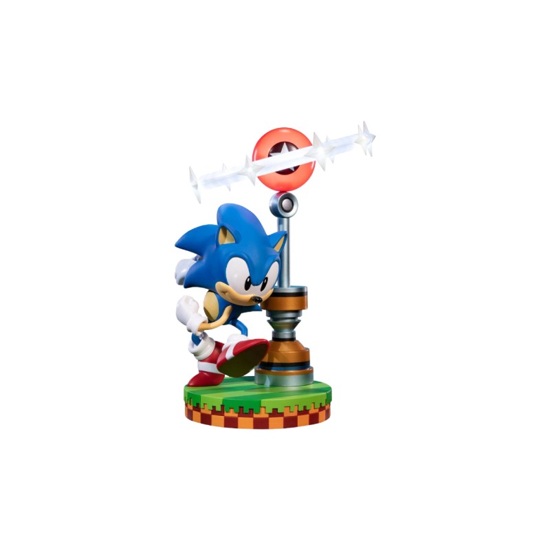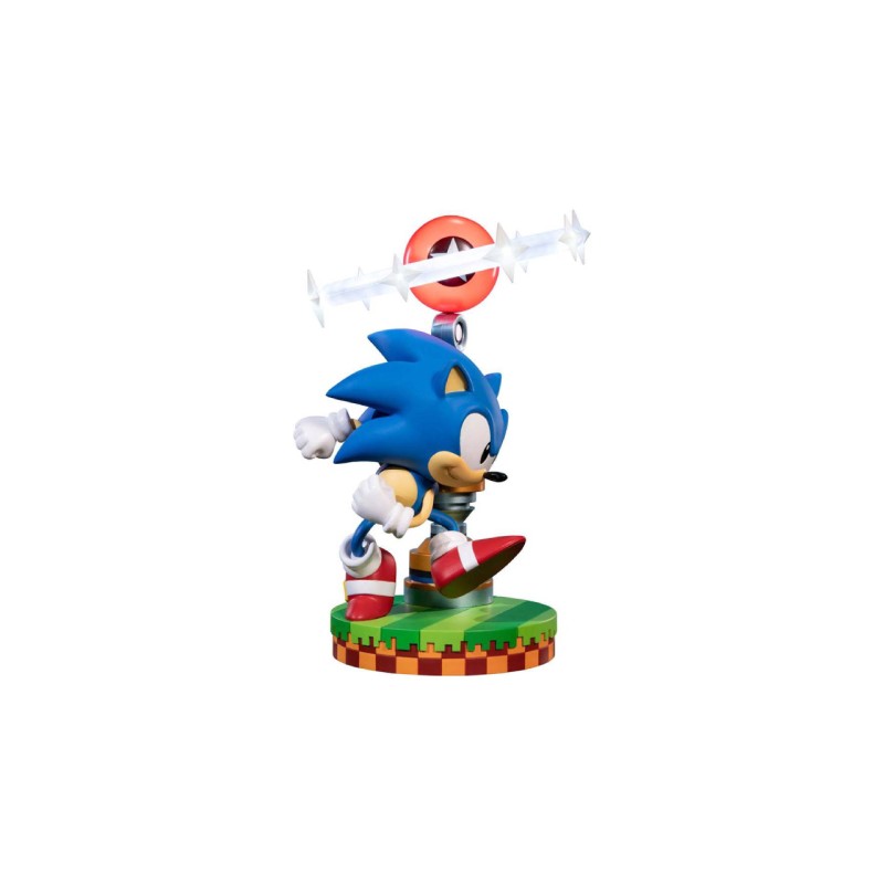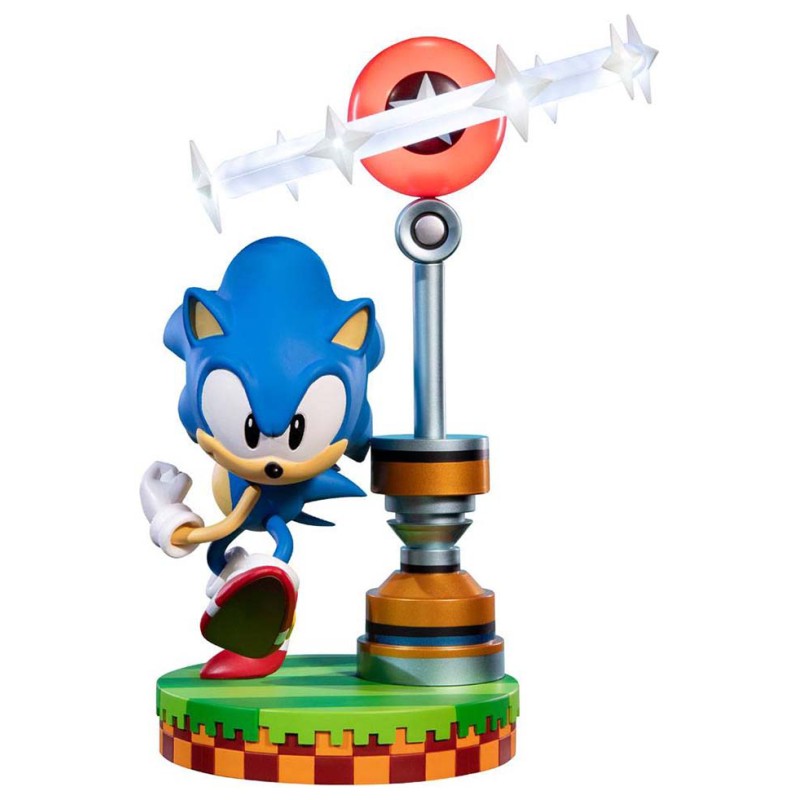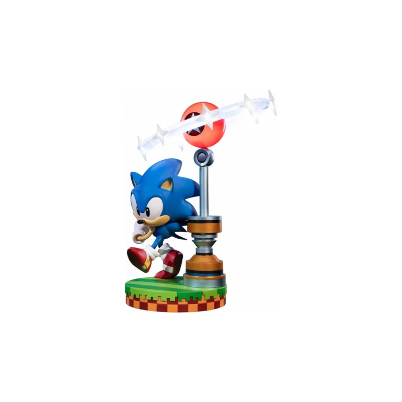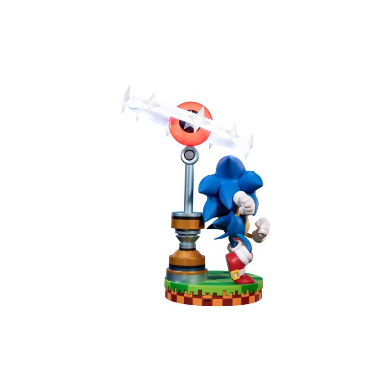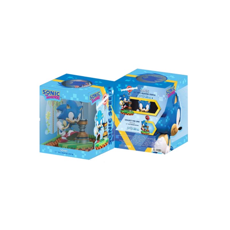 Statuia Sonic din PVC foarte detaliată Sonic este văzută într-o postură dinamică, pornind în viteză pentru a alerga mai repede decât viteza sunetului.