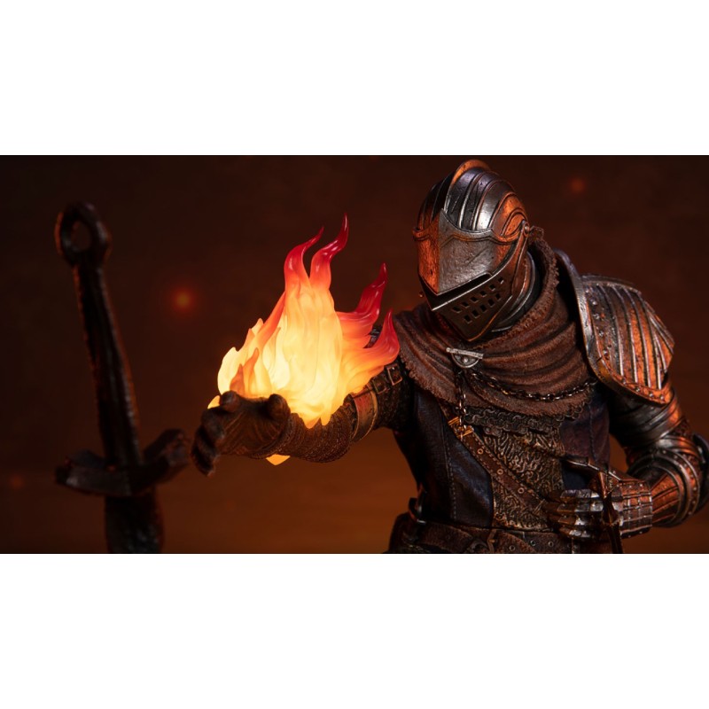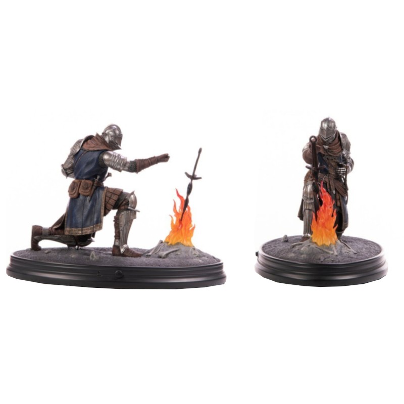 Statuia Dark Souls îl surprinde pe Elite Knight într-o postură îngenuncheată lângă focul de tabără, întinzându-și brațul.