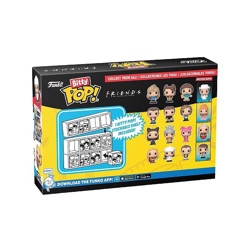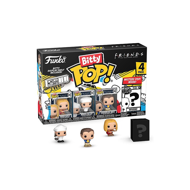 Acest pachet include 4 figiurine Bitty Pop: Phoebe Buffay, Bitty Pop, Monica Geller, Bitty Pop!
