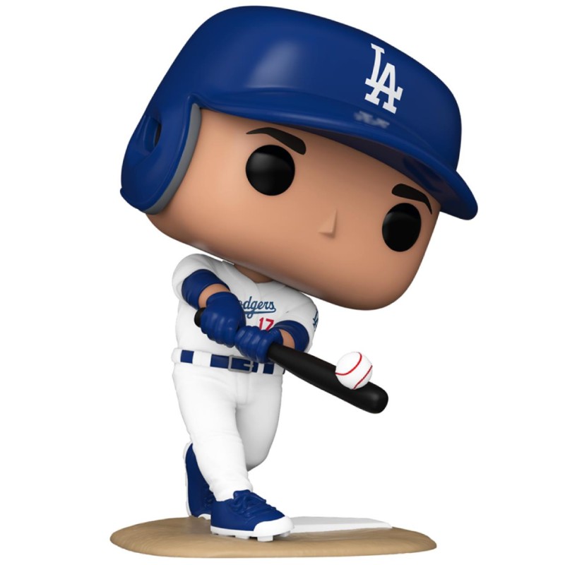 Această figură Funko Pop îl reprezintă pe Shohei Ohtani, jucătorul de baseball japonez renumit, îmbrăcat în echipamentul echipei Los Angeles Dodgers.