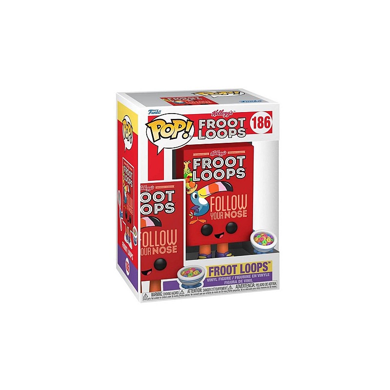 Această figurină Pop! prezintă o cutie de cereale Froot Loops, care ține în mână propriul bol de Froot Loops.
