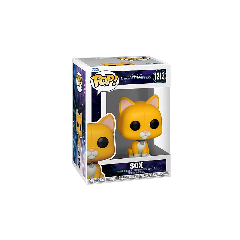 Acest Pop! prezintă pisica robotică Sox, companionul personal al lui Buzz Lightyear, care se mândrește, de asemenea, cu un finisaj Flocked asemănător blănii.